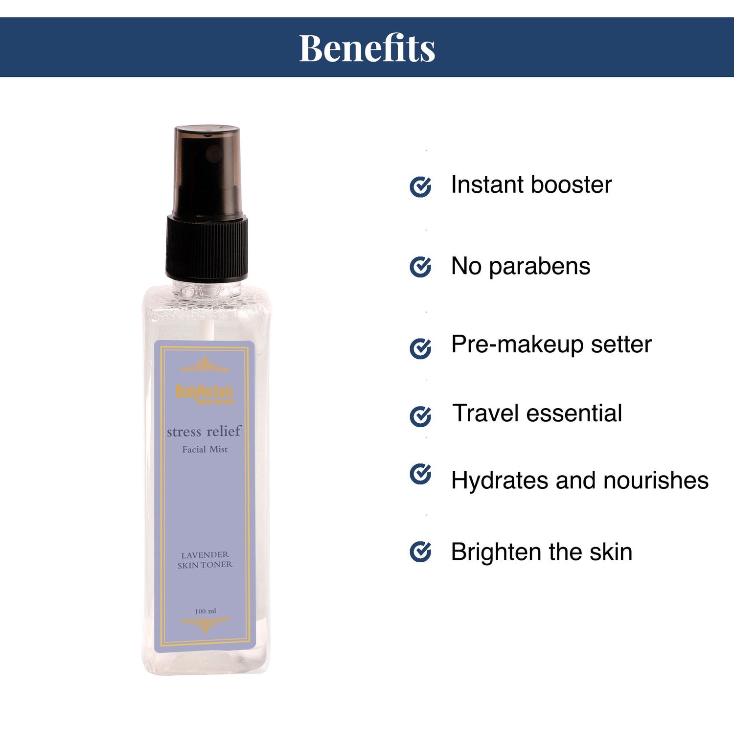 - Lavender facial mist is an instant skin booster. It has therapeutic properties to calm senses and uplift moods. Lavender gives instant glow, improves skin elasticity and replenishes the moisture level of the skin.