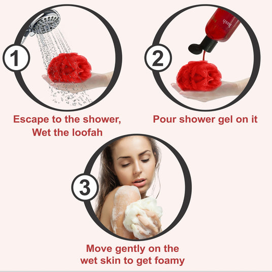You must brush shower gel for at least 20 seconds on each body area for them to work and soothe your skin. Scrub the shower gel all over your body with a loofah to get rid of all the dirt and germs.