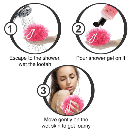 - Free Loofah - A big size loofah free with shower gel, packes together.