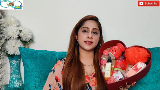 This hamper comes in a solid red heart shaped box with a beautiful red ribbon on top. It includes 8 products - Strawberry Shower Gel(200 ml), Strawberry Body Lotion(200 ml), Rose Geranium Body Oil(100ml), Aroma Diffuser, Rose Potpourri, Rose Diffuser Oil, Bath Puff & 2 Fragranced T-Lights.